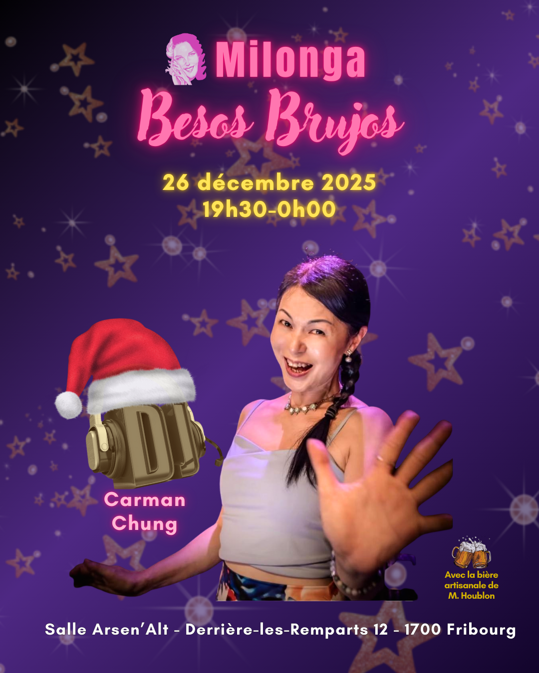 Une belle soirée de tango juste après Noël, avec comme invitée DJ Carman Chung, une musicalisatrice reconnue dans la scène internationale entre Hong Kong et Singapour. Carman propose une sélection raffinée et très dansable, équilibrant énergie, tendresse et élégance.