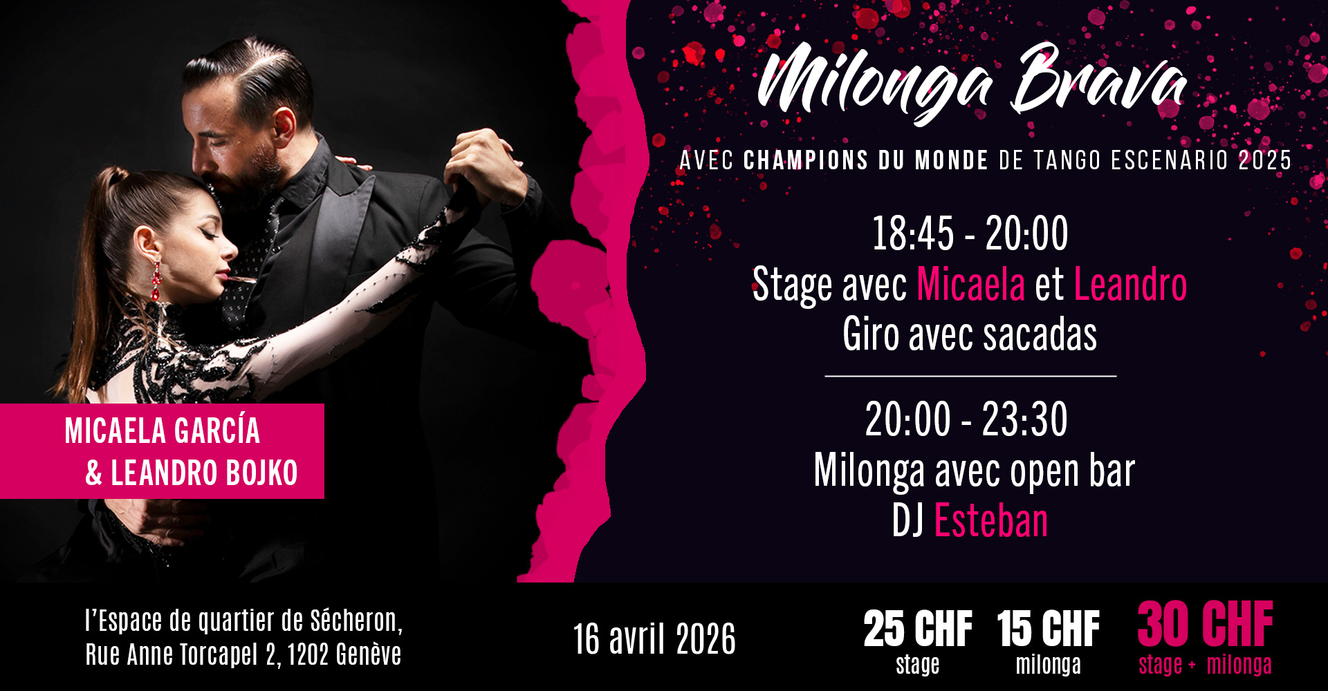 Nous avons à nouveau l’immense plaisir d’accueillir des invités d’exception : Micaela García & Leandro Bojko — champions du monde de tango escenario, mais pas seulement…