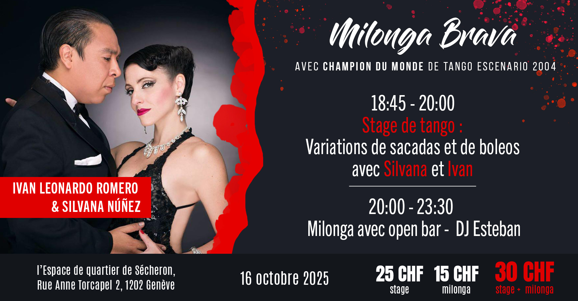 – 20:00 – 23:30 : Milonga Brava avec open bar – DJ Esteban