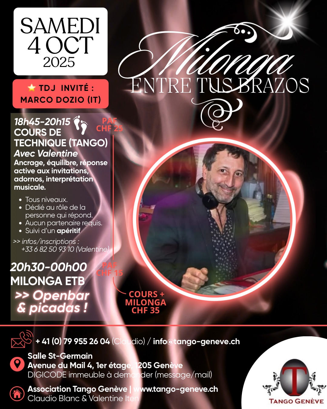Pour notre prochaine soirée « Entre tus Brazos », nous recevons le DJ italien Marco DOZIO pour vous faire danser toute la soirée !