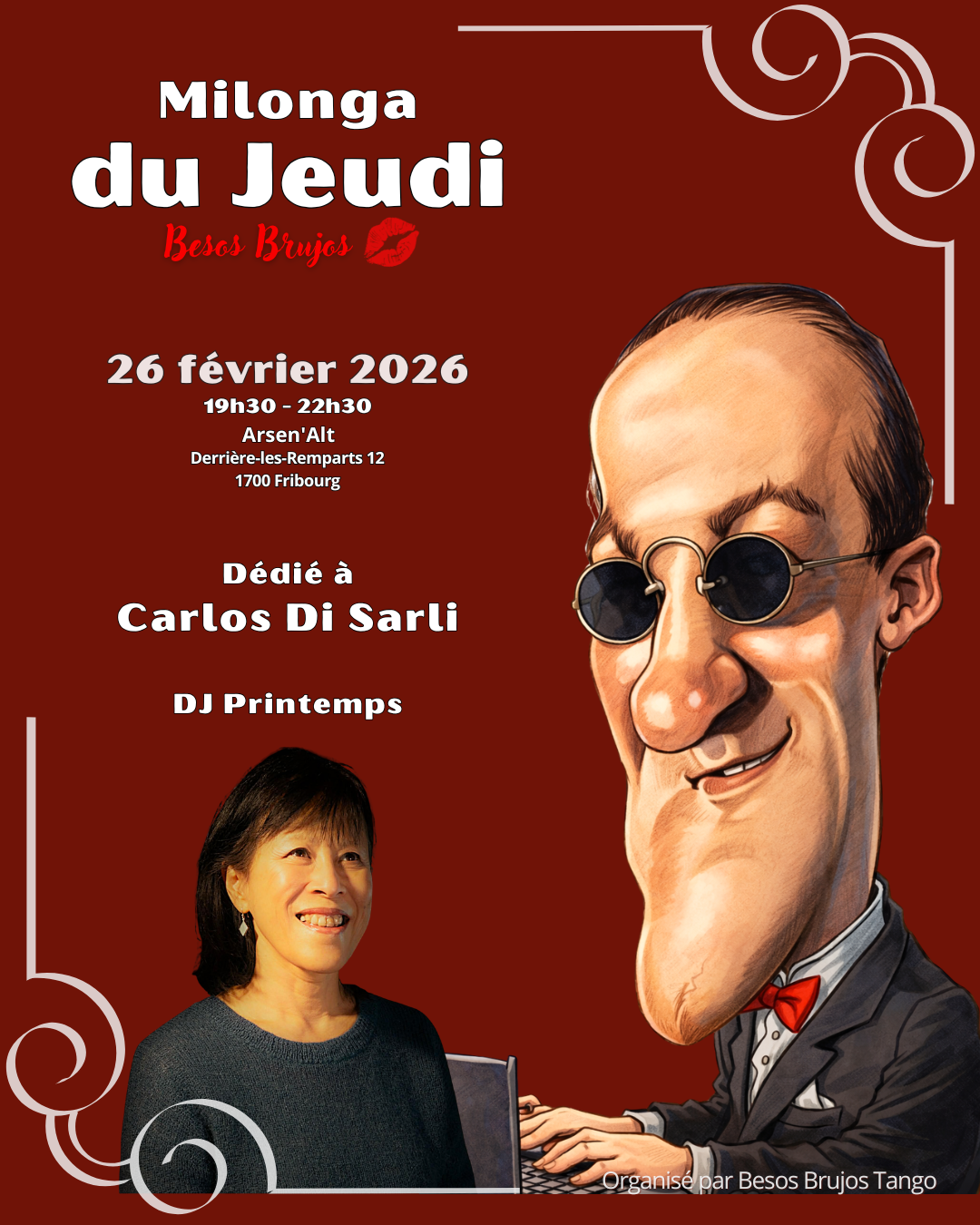 Nous danserons des tandas de tango issues des différentes périodes de l’orchestre de Carlos Di Sarli, ainsi que des vals et des milongas, afin de parcourir toute l’élégance, la finesse et la profondeur de son univers musical, spécialement choisies par DJ Printemps.