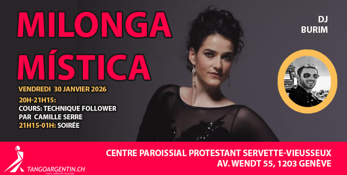 ATTENTION!!! Malheureusement, la salle de la milonga mística n’est pas disponible aujourd’hui en raison d’un imprévu. La milonga Mística et le cours sont annulés, mais la milonga XXL aura lieu à la place, svp