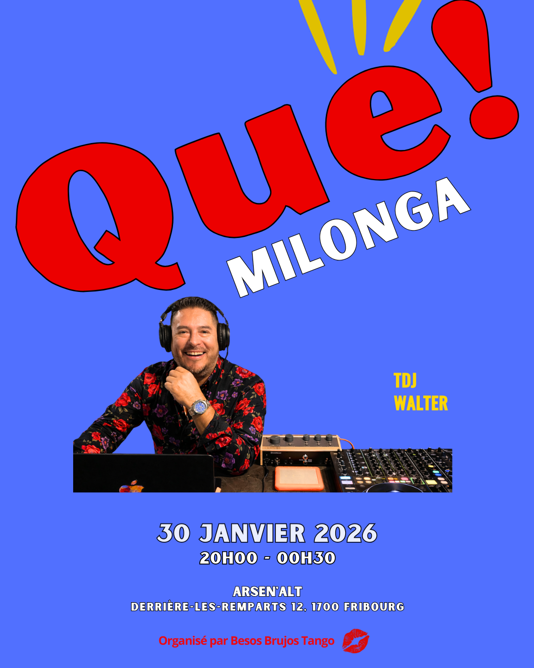 « Qué ! Milonga » est une nouvelle Milonga à Fribourg, organisée ponctuellement certains vendredis : un rendez-vous dédié simplement à la danse.