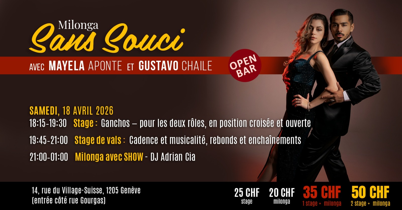 Organisation Marisol Maeder Téléphone +41 78 7662814 Email solmaeder@yahoo.fr LieuVillage-Suisse, GenèveRue du Village-Suisse 14, Genève Annoncer un stage spécial avant la milongaPrécédé d'un stage→ Choisissez votre DjTango Dj Dj Adrian Ciancio Dj Adrian Ciancio Date18 avril Heure 21:00 - 01:00 Type d’événement01. Milonga ponctuelleTango milonga sans souciPartagez cet événement + Ajouter à mon Agenda Google+ Exporter vers iCal